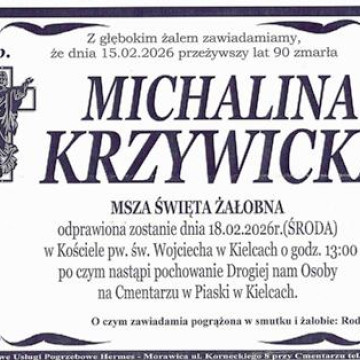 Smutna wiadomość o śmierci Pani Michaliny Krzywickiej