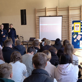 📢 W dniu dzisiejszym w naszej Szkole odbyło się spotkanie młodzieży z funkcjonariuszkami Wydziału Prewencji Komendy Wojewódzkiej Policji w Kielcach. 👮♀️Uczniowie z dużym zainteresowaniem wysłuchali prelekcji dotyczącej rodzajów przemocy oraz konsekwencji jej stosowania. Spotkanie było ważnym elementem profilaktyki i kształtowania właściwych postaw wśród młodzieży. Koordynatorami wydarzenia były panie: Agata Wołowiec-Krzepkowska, Anita Żelichowska i Ewelina Krawiec. Serdecznie dziękujemy za zaangażowanie! 🙏✨