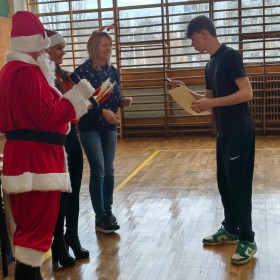 W ostatni piątek w naszej szkole odbyły się gry finałowe Mikołajkowych Turniejów Sportowych w następujących dyscyplinach: piłka nożna halowa - 1 miejsce zajęła klasa 4b, piłka koszykowa - 1 miejsce zajęła klasa 1d, badminton dziewcząt - 1 miejsce zdobyła Nikola Skowrońska z klasy 1a oraz tenis stołowy chłopców - 1 miejsce zdobył Emil Zdunek z klasy 5c. W zmaganiach sportowych wzięli udział sportowcy z dziesięciu klas oraz liczni kibice w strojach mikołajowych. Gratulujemy sukcesów i dziękujemy kibicom za wesoły doping🧑🎄🤶🧑🎄