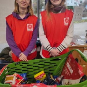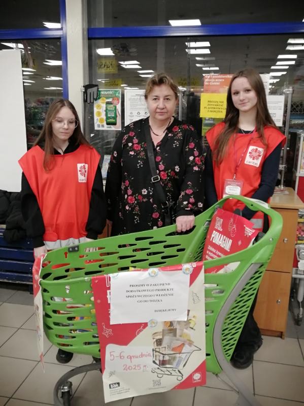"TAK POMAGAM" Pod tym hasłem współpracowaliśmy 5 i 6 grudnia z Caritas Polska. Wolontariusze poświęcając swój wolny czas pełnili dyżur w sklepie Społem. Zebrane produkty zostaną przekazane w ręce osób potrzebujących. Opiekę sprawowały Pani Paulina Kucharczyk i Pani Lidia Kieszkowska, która koordynowała całością zbiórki. Dziękujemy wszystkim zaangażowanym w to przedsięwzięcie.
