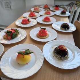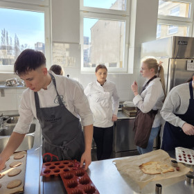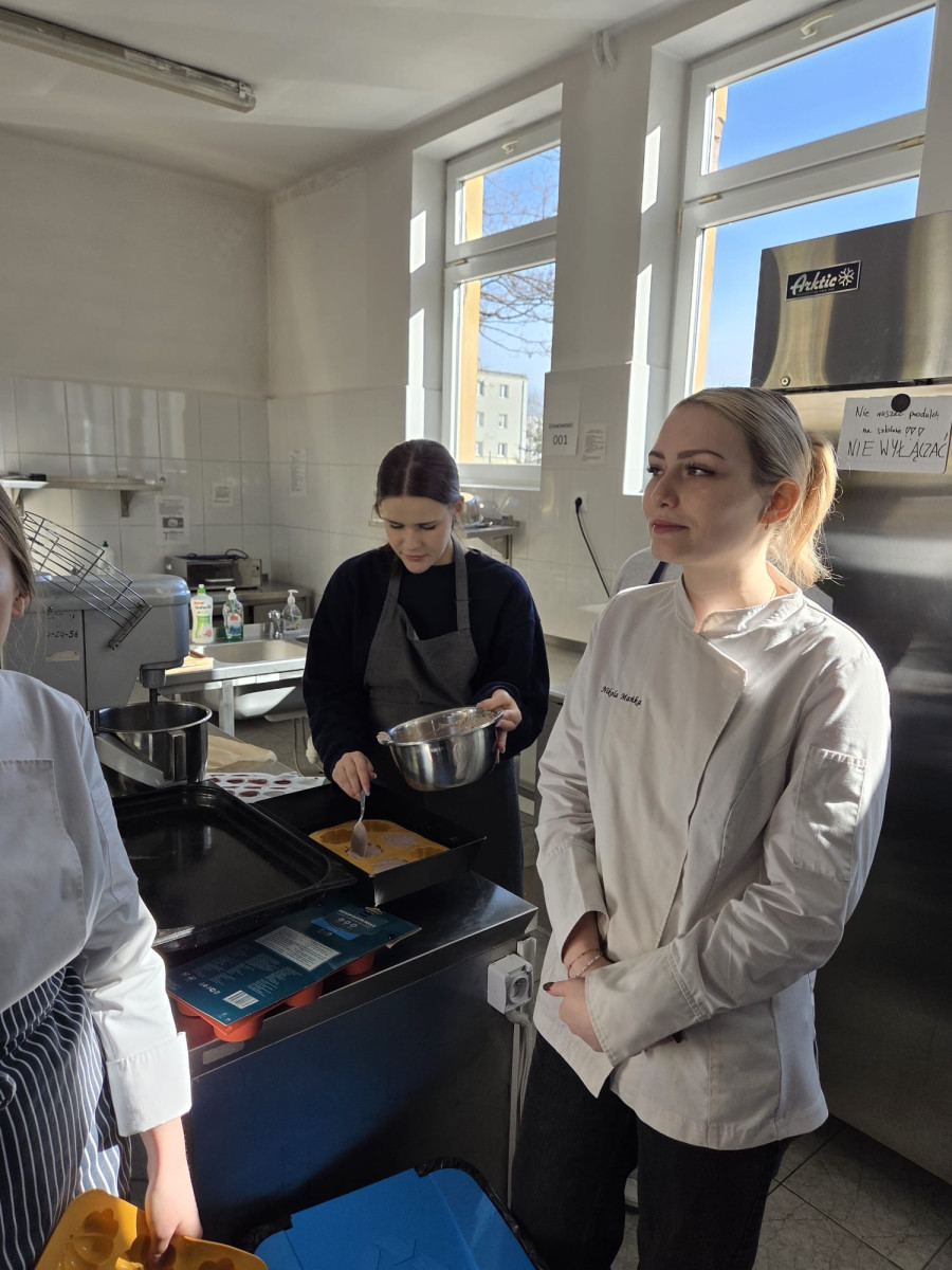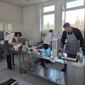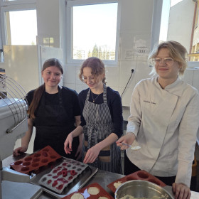 W dniach 6-7 marca br. uczniowie naszej szkoły, uczestniczący w projekcie pn. Stażowe zawirowanie szansą na lepszą przyszłość II wzięli udział w szkoleniu cukierniczym "Monoporcje". Pod okiem pana Andrzeja Gada, szefa kuchni restauracji Złota Kaczka w hotelu Tęczowym Młyn i pana Karola Smorąga zdobywali nowe umiejętności. Szkolenie było zorganizowanie jako odpowiedź na zdiagnozowane potrzeby osób uczestniczących w ww. projekcie.