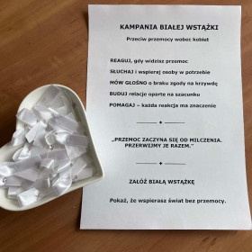 W związku z trwającą w naszej Szkole Kampanią Białej Wstążki serdecznie dziękujemy wszystkim nauczycielom i wychowawcom, którzy w geście jedności przeciwko przemocy założyli symboliczne białe wstążki oraz podjęli z uczniami tematykę przeciwdziałania agresji i poszukiwania dróg wyjścia z kryzysu psychicznego.