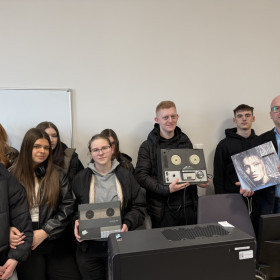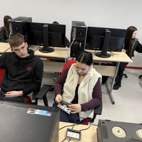 W czwartek, 12 marca br. klasa 4c pod opieką pana Tomasza Świerczyny uczestniczyła w wydarzeniach związanych z Dniem Otwartym Wydziału Humanistycznego Uniwersytetu Jana Kochanowskiego w Kielcach. Po uroczystym otwarciu wydarzenia przez dziekana Wydziału Humanistycznego, doktora habilitowanego Jerzego Gapysa i prezentacji poszczególnych instytutów młodzież wysłuchała wykładu magistra Karola Zdziecha na temat „Czy ludzie w średniowieczu mieli depresję? Przypadek papieża Grzegorza VII”. Po części teoretycznej mgr inż. Arkadiusz Miller przeprowadził bardzo ciekawy pokaz pt. „Co w radiu piszczy? Historia radia i urządzeń do rejestracji dźwięku. Od taśmy magnetycznej i płyty winylowej do platform streamingowych, czyli historia rejestracji dźwięku. Zobacz jak zmieniała się technika nośników audio i jak wpływało to na odbiór muzyki i innych nagrań.” Zajęcia te stanowiły wartościową możliwość powrotu do czasów od lat sześćdziesiątych po osiemdziesiąte i związanych z nimi magnetofonów szpulowych oraz kasetowych w wersji profesjonalnej i amatorskiej , by potem przejść przez typowe dla lat dziewięćdziesiątych urządzenia MiniDisc po używane teraz powszechnie platformy streamingowe. Przy okazji mogliśmy poznać tajniki montażu dźwięku na profesjonalnym sprzęcie używanym w rozgłośniach radiowych. Następnie studentki V roku przeprowadziły z młodzieżą warsztaty na temat „Social media- jak tworzyć angażujące treści?”. Mamy nadzieję, że zajęcia na tyle wywarły pozytywne wrażenie wśród naszych uczniów, że część z nich zdecyduje się podjąć studia na UJK!