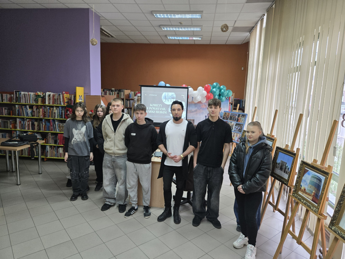 W dniu 12 grudnia 2025 r. w filii nr 9 MBP w Kielcach odbyła się ciekawa lekcja historii z nauczycielem naszej szkoły, doktorem Przemysławem Znojkiem pod tytułem: „Walczyły, kochały i umierały. Kobiety w Powstaniu Warszawskim” poświęcona heroicznej postawie kobiet biorących udział w Powstaniu Warszawskim. W wydarzeniu uczestniczyli uczniowie z klasy 3c oraz 4b pod opieką pani Doroty Kostyły.