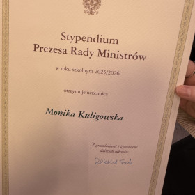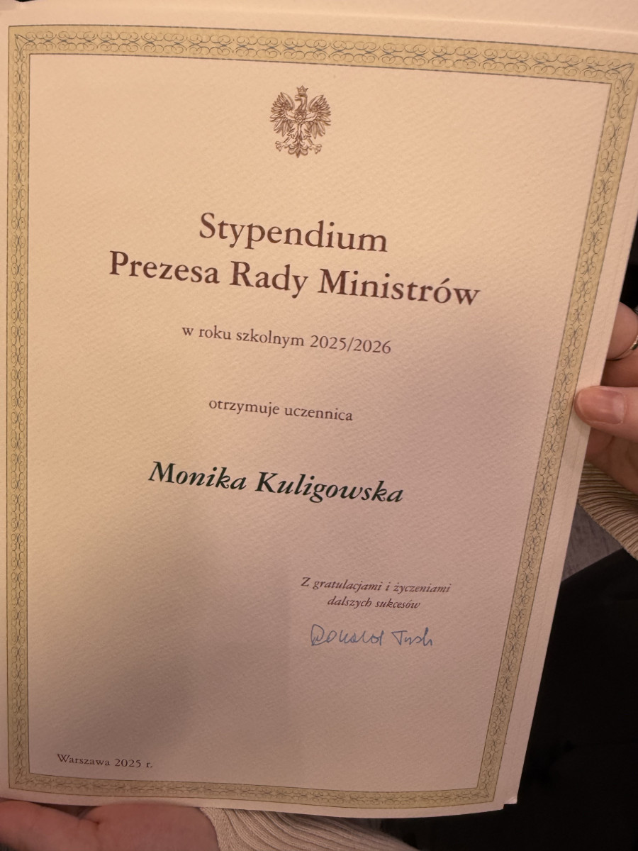 Z dumą informujemy, że uczennice naszej szkoły Monika Kuligowska oraz Gabriela Toboła zostały uhonorowane Stypendium Prezesa Rady Ministrów 🎓✨