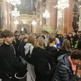 Hasłem tegorocznej pielgrzymki maturzystów na Jasną Górę to: "Maryja - Matka Nadziei". Nasi uczniowie tam byli i za wstawiennictwem Maryi pragną zdać egzamin dojrzałości. Po drodze krzyżowej wszyscy uczniowie otrzymali poświęcone długopisy i wizerunek Matki Bożej Jasnogórskiej. Z naszymi maturzysta mi była Pani Lidia Kieszkowska i wychowawczyni klasy 5D Pani Małgorzata Rokita.