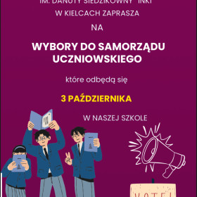 Opublikowano: 23.09.2025 Już niebawem wybory do Samorządu Uczniowskiego w naszej szkole👊Czekamy na Wasze kandydatury 👍szczegółowych informacji udzielają panie Anna Ejsmont-Pałyga i Aleksandra Koprowska 🙂Zapraszamy 🫶