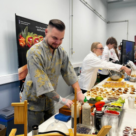 Szczególne podziękowania składamy naszemu gościowi specjalnemu – Panu Adrianowi Salamonowi, mistrzowi sushi, za inspirujący pokaz i podzielenie się swoją wiedzą oraz doświadczeniem.
