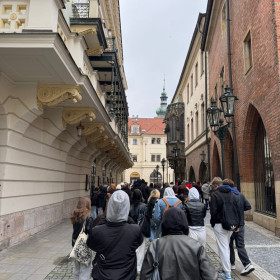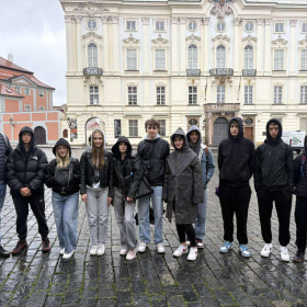 Trzeci dzień w Pradze upłynął pod znakiem historii, kultury i odrobiny kontrowersyjnej sztuki! Zaczęliśmy od spaceru po Dzielnicy Żydowskiej (Josefov) – niezwykle poruszające miejsce, pełne pamięci i symboliki. Odwiedziliśmy synagogi i Stary Cmentarz Żydowski, które zrobiły na nas ogromne wrażenie. Później udaliśmy się do Pałacu Lucerna, gdzie czekała na nas słynna, nieco absurdalna rzeźba Davida Černego – odwrócony koń. Praga potrafi zaskakiwać! 😄 Zajrzeliśmy również do Uniwersytetu Karola, jednej z najstarszych uczelni w Europie – niesamowita atmosfera miejsca, gdzie od wieków kształcą się kolejne pokolenia.